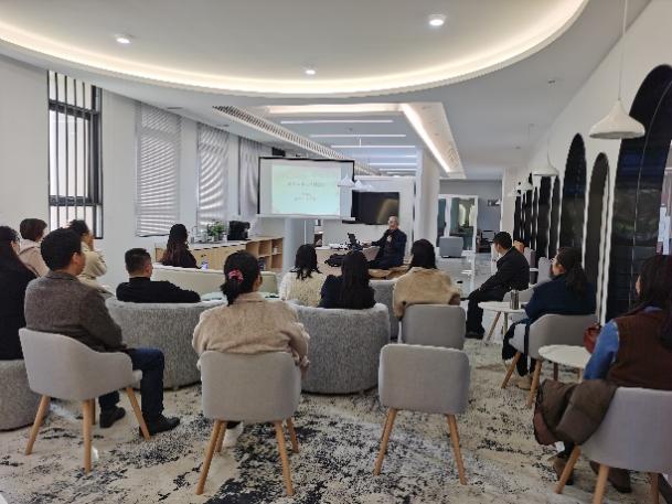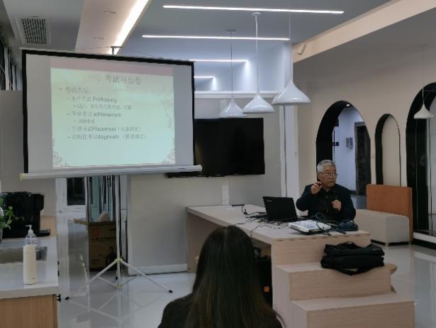 11月28日下午,由万象城awcsport官网主办的“乐享”课程建设活动在学院一楼院史室顺利开展。本次活动由副院长徐以中教授主持,吴鼎民教授和谢小苑教授主讲,两位老师围绕“英语试卷编制及质量评价”、“教材建设探讨”话题分享了自己多年来的心得体悟,万象城awcsport官网和其他学院20余名教师参加。